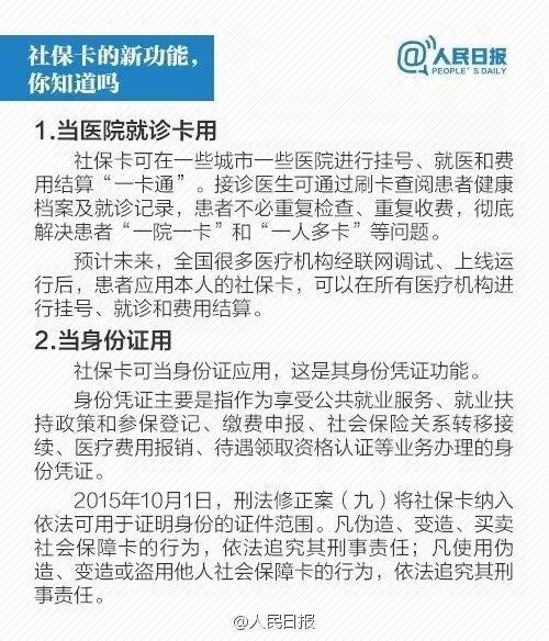 2017年,社保卡将基本实现全国一卡通。你还以为社保卡=医保卡?还在为社保卡无法异地使用伤脑筋?今后,社保卡不仅可以异地看病买药,在部分地区还能当身份证、当银行卡、交水电费、网上挂号、购买商业保险、当公交卡刷!